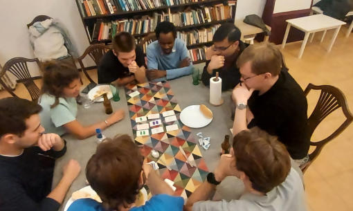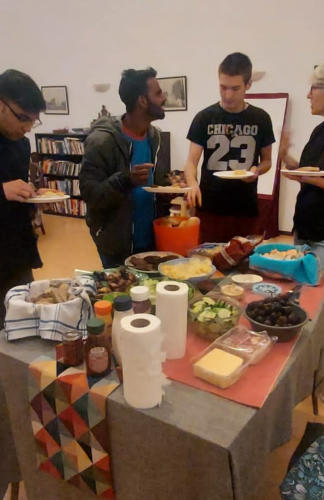 Once a month on Wednesday we get together for a social gathering. We may play games, listen to music, explore the city or do